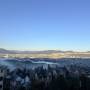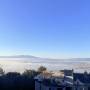 在半山腰,房間景色很美,早上起來好像在仙境。還可以泡温泉。