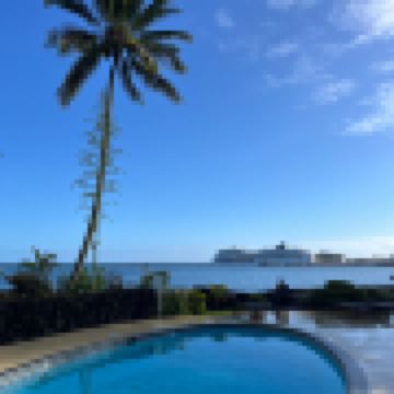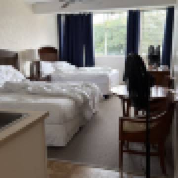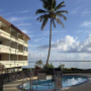 酒店地理位置不錯,旁邊有集市和公園,房間臨希洛灣,景色優美,免費停車。房間乾淨整潔,有小廚房,餐具齊全。感覺什麼都好。但是,住宿最關鍵的兩個因素破壞了所有的美好!1.沒有空調,三個電扇24小時轉都沒用!2.網絡極差,幾乎沒有!