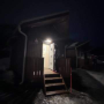 山腳下的木結構獨棟別墅,離公交車站步行10分鐘左右; 晚上看到了極光,很贊; 坐纜車很方便,步行20分鐘左右;