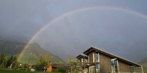 Architect's house Karersee, view of rose garden, Latemar and western Alps