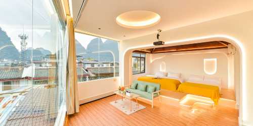 與好友旅遊 270度兩面全景玻璃房(觀小縣城全景+日出日落)