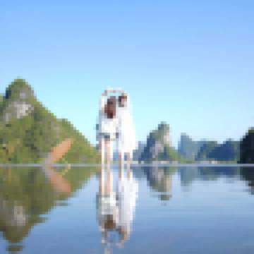 與好友旅遊 天空之湖拍山水倒影浴缸大床房