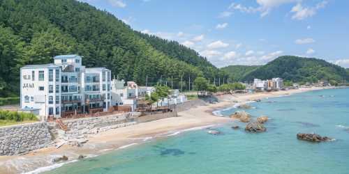 깨끗하게 잘 관리는 되었지만 건물이 노후한 것은 숨길 수가 없었습니다. 화장실은 욕조없이 샤워기와 세면대 변기가 있는 매우 큰 구조였고, 방안에 자쿠지가 있었는데 글쎄요..뜬금없이 바로 옆에 침상이 있는데 자쿠지를 사용할수가 있나 싶었습니다. 싱크대와 냉장고도 있어서 가족끼리 음식을 해먹을수 있더군요. 베란다에 원목테이블이 있어서 바다를 보고 있을 수 있어서 좋았습니다. 옆 베란다과도 잘 차단되어 있어서 괜찮았습니다. 국도경유로 숙박만 하기위해 들른 곳이라 식사와 바베큐는 하지 않았지만 바다를 보면서 바베큐를 하기에는 멋진 곳이라 생각들었습니다. 파도소리가 바로 앞에서 들렸지만 수면엔 큰 지장이 없었네요. 침구가 약간 눅눅했습니다.