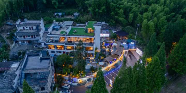 獨自旅遊 明月鬆·輕奢山景雙床房+懶人沙發+全景落地+休憩茶桌