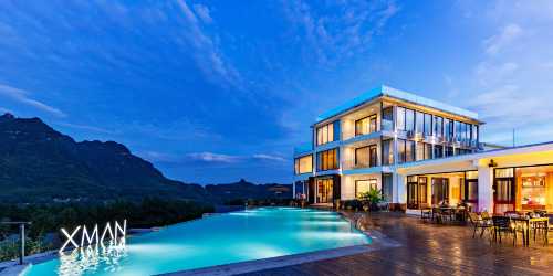 情侶 暖陽丨山景大床房「禪意茶台·180°峯林泳池景·大浴缸」