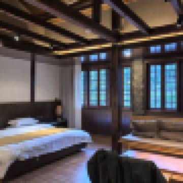 其他 水鄉·雅緻大床房(70寸4k超級電視·紅木特大板床·土樓屋頂風景·清新茶台)
