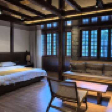 家庭旅遊 映月·精緻大床房(紅木特大板床·土樓風格·70寸4k超級電視·清新茶台·賞土牆青瓦)