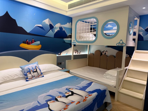 和家人出遊 樂園企鵝主題三床房【萌趣滑梯+智能客控】