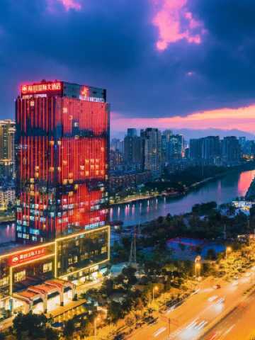 梅園國際大酒店(福州光明港公園店)坐落於福州市晉安區東部出入口,富有韻律感的沿河建築與光明港公園交相輝映,是光明港公園內一道獨特的風景線。酒店比鄰福州海峽金融商務區,車程約5-10分鐘便可抵達台江萬達商圈、鼓山風景區、海峽會展中心、東部辦公區等地。