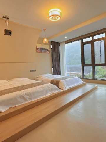 客房的設計配合以白牆與原木裝飾,原木傢俱點綴其中,使空間如家一般温馨。民宿擁有多套個性化客房,客房典雅精緻、舒適怡人,有單人房,雙人房以及家庭套房等多種房型貼心滿足您不同的入住需求。設施齊全,環境舒適,24小時提供暖心服務,獨立衞生間、高速WiFi,24h熱水,一次性洗漱用品等。床單,被罩,枕巾等都是一客一換統一消毒洗滌,保證用戶入住的安全和衞生。公共區域配有麻將機、投影儀、卡拉OK、壁爐、圍爐、花園、魚池、戲水池、果園、森林秋千等等。
