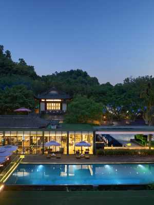 茂密繁盛間的靈秀温泉,可同時容納2000人泡湯賞景,在此可以享受一家老小共浴温泉的親情時刻和天倫之樂。新添私密高端定製湯池,院落中供你獨享,在熱氣繚繞的氡温泉中,在青山綠水間舒心活絡,放鬆身心,肆意舒展。