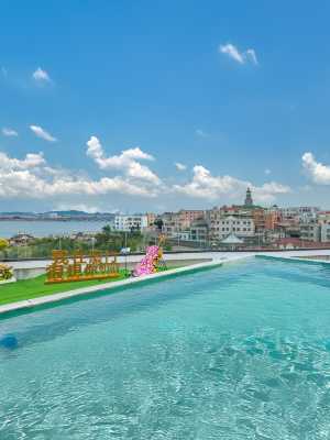 酒店亮點—-擁有上千平方的空中花園式海景露台,可俯瞰嘉庚公園全景、集美大橋、廈門新會展中心及周邊海域,在山海的懷抱裏,相逢山與海,距離剛剛好。海景露台上設置小型游泳池、網紅天梯、提琴花藝等多處網紅打卡點。配備休閒戶外沙發,聚會、團建、求婚、情侶出遊等好去處,體驗一個人的故事,兩個人的浪漫,一羣人的歡樂;如歸故城,收穫不期而遇的美好。