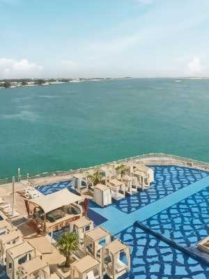 這座 5 星級阿布扎比度假勝地位於市區商業機構和濱海區中間的山上,城市風格與海濱休閒在這裏相互碰撞。這裏有着迷人的天際線和阿拉伯灣風景,這座阿布扎比地標性的酒店以其白色沙灘、碼頭和可俯瞰水面的流行餐廳而聞名。友好的員工會幫您充分利用您的休閒時間,為您提供温泉水療、壁球到日落雞尾酒等各種休閒服務。