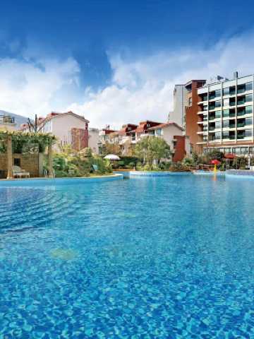 養生温泉森林覆蓋率高達79.29%,擁有47個泡池,温泉水屬碳酸鈣鎂礦泉,可飲可浴。歡樂水世界擁有各類娛樂設施,備受小朋友的喜愛。