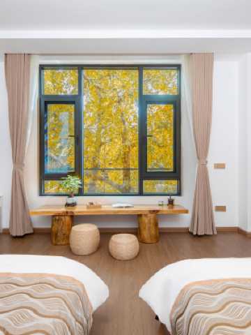 民宿位於銀杏村核心地帶,推窗即見金黃銀杏簌簌飄落,超大陽台更是讓您與銀杏樹 “零距離” 相擁,秋冬時節,在院子或露天區域圍爐煮茶,看銀杏慢落,滿是詩意禪意。