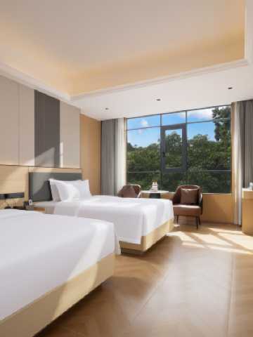 酒店每間客房內配有超大落地窗和陽台,所有客房陽台均配有私家温泉泡池。通過多方面、多角度的互動和體驗,開啟熱帶雨林慢生活度假模式,體驗中國特色養生主題酒店創造的完美度假體驗。升級改造後的客房整體風格不變,在硬件服務上全面改造燈光流明,電視櫃、沙發等,使房間提升整體舒適度,提高使用空間,與自然更貼切。