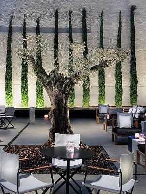 在酒店的頂端,有一個種植着橄欖樹的城市花園,大型恒温無邊泳池以及熱帶風情的植物,泳池與吊牀融為一體,您可以在這裏品嚐開胃菜,在日落時分小酌一杯或在夜幕降臨時來一杯雞尾酒。