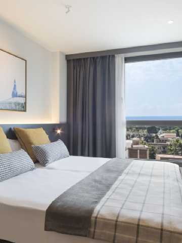 巴塞羅那美利亞天空酒店是一家壯觀、現代、創新的酒店,它無疑是巴塞羅那市最好的酒店之一。酒店高120米,共29層,設有213間客房,是巴塞羅那市天際線上最高的標誌性建築之一。 酒店位於市中心,外觀現代,由法國著名的國際建築設計師多米尼克?佩羅所設計,法國巴黎的大圖書館就是他的作品。 其他令人印象深刻的設施有室外泳池、超豪華水療中心、高雅的Dos Cielos餐廳(屬於米其林星級餐廳)、富麗堂皇的露台(朝海、能將整個巴塞羅那市的全景一覽無遺)、一個現代化的會議中心,以及精緻的客房。