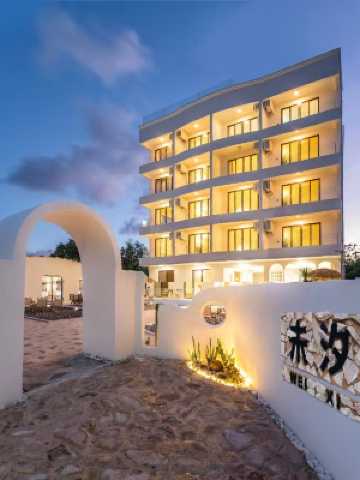 潿洲島別島海灘美宿隱建於潿洲島中心小學後200米海岸線上,臨近五彩灘景區及南灣街,真正的無敵海景,面朝大海! 21海里?別島取名於“日落潿洲郭,風斜別島洋”的“別島”,是21海里營造的與自然和諧相處的美好意境,是每一位嚮往大海,沙灘,白雲的人兒浪漫又質樸的追求,有如岑參筆下“忽如一夜春風來”,又如陶居士的“忽逢桃花林”!