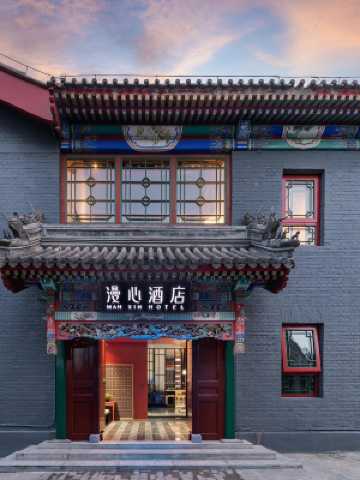 酒店地處天安門南,正陽橋下,緊鄰前門大街,是北京新派四合院酒店的代表。酒店位於前門大街大江衚衕120號,主題是“尋味北京”打造老京城的古韻與現代國潮網紅的完美融合,即古韻風情,又國潮夠時尚。是集宮廷、衚衕、空中合院等元素的大成之作,適合網紅打卡、家庭親子、情侶出行等多種人羣沉浸式體驗京都風味。漫心酒店將屬地化的特色融入設計和體驗裏,天然兼具商旅與旅行屬性,是城市探索必住的中高端酒店。你可以從充滿設計感的大堂、走廊的細節、房間窗外的風景,感受這一座城市的韻味。