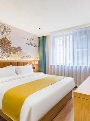 客房以科技引領未來的設計理念,房間配有65寸智能電視,藍牙音箱、電動窗簾、小冰箱,部分房間配備小度智能音箱、膠囊咖啡機、開水機、空氣淨化器,大部分房間帶浴缸,洗護用品採用源自法國純植物精油結合天然洗護成分,打造出芳療級洗護用品。客房隔音系統由清華學所設計保證您的安靜睡眠。華掌櫃和機器人為您帶來無接觸服務和高科技智能體驗,更有健身房和自助洗衣房為您的出行增添一份舒心和便捷。