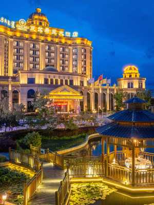 酒店為歐式園林風格,院內亭台水榭,九曲迴廊由國內著名園林大師設計而成,綠化面積佔比達40%,是建築美學與城市環境、自然景觀的完美組合,是建築與空間,文化與藝術,體驗與情感的完美組合。