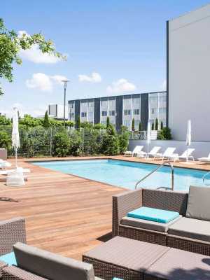入住波爾多湖濱美居酒店,工作休閒兩不誤。來這裏出差?從酒店步行 10 分鐘即可抵達巴黎會議和展覽中心,酒店也有 3 間會議室可用於舉辦會議。在我們的游泳池和私密的花園露台上放鬆休息。如果您喜歡這種涼爽、綠樹成蔭的環境,可以要求入住這種客房。我們為週末度假的家庭遊客提供最多可容納 4 人的寬敞客房和套房