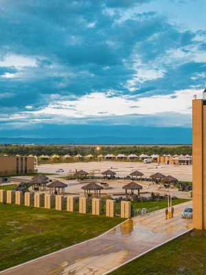 營地座落在額爾齊斯河南岸沙漠灌木林地帶。豐富的沙漠植被、胡楊林帶、原始森林、額河自然景觀貫穿於營地。 這裏的137頂帳篷採用哈薩克族牧民氈房設計理念,與沙漠自然融為一體,讓你沉浸在那即將逝去的牧道文化中。大面積使用全景落地窗,同時也擁有最優美的帳篷營地自然風景視角。其配套服務也與周邊環境完美無瑕融合,深入荒漠,聆聽大地的鼓動!在這裏可以一邊享受“迴歸自然的住宿”,一邊享受野奢營地帶給你的阿勒泰人文風情。背靠壯麗的沙漠戈壁,充滿了遊獵時期的野性又搭配精緻的豪奢風味,寬闊的觀景空間,木質的桌椅……新疆特色自助燒烤餐廳隱藏着野味十足。在這裏,身體和心靈迴歸到最自然舒適的狀態!