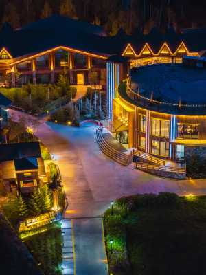酒店外觀造型別致,設施完善、功能齊全、裝修質樸典雅又不失豪華,外牆鋪貼進口樟子松木板和鱗石,木刻楞造型屋頂,選用物品大多是國際豪華級標準配置,如TOTO衞浴,康乃馨布草,德國詩瓏漆。