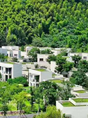 酒店選址於浙江長興,系城市周邊稀缺園地,擁有大片茶園、竹林,園地中溪流潺潺,為“距都市不遠,離自然很近”的度假綠洲。