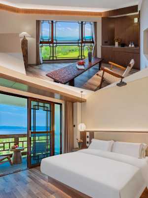 在房內即可看到湖景或山景,並配有48寸液晶平板電視及高速WIFI,有希爾頓“恬靜之床”。酒店為行政樓層的賓客提供早餐、茶點和飲品,並可使用會議室2個小時。