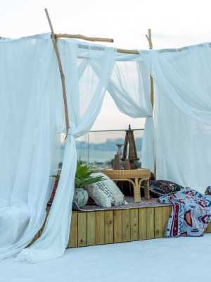 客棧面朝洱海,可以躺在屋裏就能全景欣賞蒼山和洱海的壯美。春季可觀雪頂藍天,洱海丁達爾效應,夏季可賞白雲變化萬千,光影搖曳,秋季能夠沉醉在洱海開海節之後的滿湖漁光星辰中,而冬季則可賞日照金山,白鷗戲水。與海西秀美的田園風光相比,知常小築的窗外更多的是蒼山洱海的壯闊和大理風花雪月的醉人。知常小築有全畫幅海景茶室,也有可以拍美照的屋頂花牆和天空之境,希望不論是在房間裏還是公區,您都在知常小築留下美好回憶。
