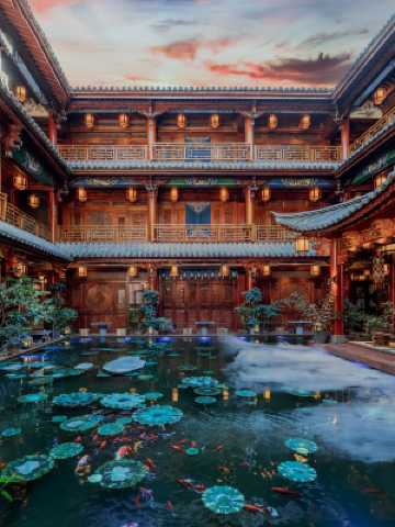 酒店位於大理古城外的文獻路,靠近古城南門,車輛可直達店門,進古城步行可到達,交通非常便利; 酒店是白族傳統建築,純古風裝修風格,入店會有穿越感。店內水榭不定期為客人提供國風類表演,如古琴、古箏、琵琶、民族服飾演繹等; 酒店的客房用品齊全,中央空調,店內有電梯、停車場,我們期待為您提供服務。