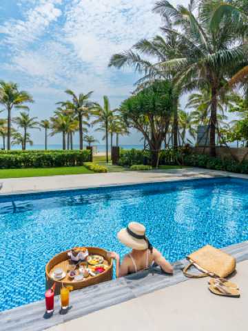 該度假酒店坐落於隱蔽寧靜的沙灘,位於峴港市及被聯合國教科文組織列為世界遺產的會安城鎮之間,分別相距約20分鐘車程。酒店擁有309間客房,包括42間高級客房、238間豪華客房、20間套房、8戶酒店式住宅,以及一棟 Monogram 別墅,暖和及中性色調的室內設計帶出平靜優雅的現代氣息。