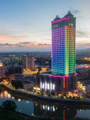 酒店面積近5萬平米,擁有豪華客房共三百餘間/套,設有能同時容納350人用餐的豪華中餐廳及11間精心裝修中餐包房,能同時容納1000人開會的1200平米無柱大宴會廳,及滿足各類商務會議需求的9間多功能會議室,32樓為360度觀景全日制西餐廳,34樓是極具特色的樓頂觀光餐吧,35層是能夠俯瞰越南芒街和整個東興的觀光平台,7層還有空中游泳池、網球場、健身中心等設施,是集旅遊度假、商務會議、餐飲住宿、休閒購物為一體的大型綜合體,酒店將以熱情的服務,舒適的房間,期待您的到來。