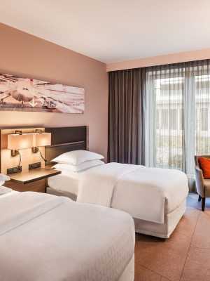 喜來登杜塞爾多夫機場酒店位於杜塞爾多夫洛豪森,距離杜塞爾多夫展覽有限公司和杜塞爾多夫聖誕市場不到 10 分鐘車程。 此豪華酒店距離國王大道 5.4 英里(8.6 公里),距離三菱電機大廳 (室內體育館) 7.2 英里(11.7 公里)。 您可充分利用健身中心等度假設施,或者到露台和花園欣賞美景。此酒店的其他特色包括免費 WiFi、禮賓服務和禮品店/報攤。 您可以到餐廳享用一頓美餐,也可以待在房間裏,享受酒店的部分時段客房送餐服務。在忙碌的一天後,不妨去酒吧/酒廊輕鬆一下。自助式早餐(收費)供應時間為:週一至週五 05:30 至 10:30,週末 05:30 至 11:00。 特色服務/設施包括免費高速有線上網、24 小時商務中心和豪華轎車或公務車服務。計劃在杜塞爾多夫舉辦活動?這家酒店擁有 597 平方米(6426 平方英尺)的空間,包括會議場地和17 間會議室。酒店提供收費自助停車。 酒店有 195 間客房,提供液晶電視。提供免費有線和無線上網,方便您與朋友保持聯繫;另提供有線頻道,可滿足您的娛樂需求。配備淋浴/盆浴組合的私人浴室提供免費洗浴用品和吹風機。便利設施包括電話,以及保險箱和書桌。