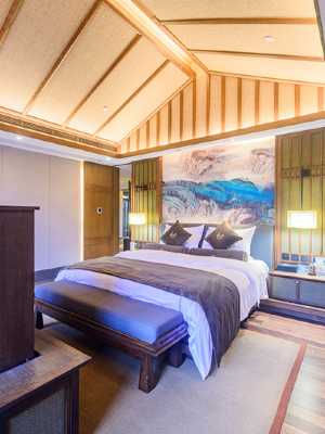 酒店全覆蓋牆暖,讓您感受春天的温暖;客房用品超高舒適度;能呼吸的牆壁加全實木傢俱,在松濤林中遠眺貢嘎雪山。