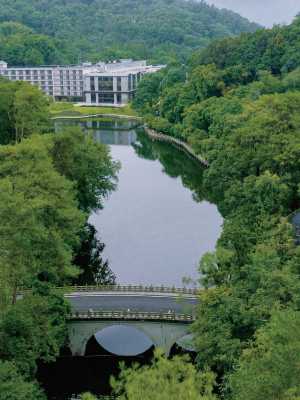 賓館始終秉承“自然·原始”的原生態理念,總體佈局依山傍水,足不出戶,即可領略館內無與倫比的自然環境。身居室內,即可領略房在景中,景隨人駐,被著名作家金庸先生譽為:每一扇窗戶都是一幅風景畫!