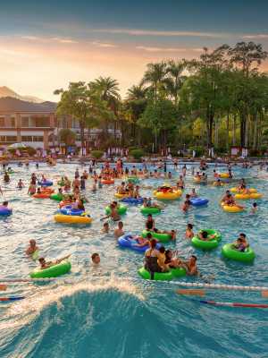度假村以“生命在於運動”的“動感”理念,打破了中國乃至世界千百年來温泉“靜態浸泡”的固有模式,開創了温泉衝浪、温泉漂流等十大動感系列產品。
