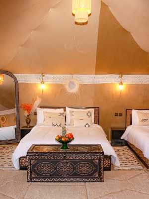 Amskou Luxury Desert Camp坐落於梅爾祖卡,配備免費WiFi和空調。客人可以使用帶露台的花園。 早餐提供自助、素食或全素食三種選擇。這家豪華帳篷擁有一間供應摩洛哥風味美食的餐廳,可應要求提供普通素食、無乳製品和無麩質食品三種選擇。 這家住宿配備共用休息室。客人可以在附近體驗徒步。 住宿距離拉希迪耶機場有120公里,提供付費機場接駁服務。