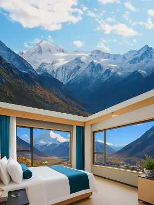 酒店位於甘孜縣格薩爾王城景區內,擁有露天温泉游泳池,在房間裏就能看見雪山、湖泊,給您不一樣的體驗。