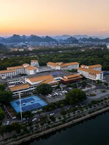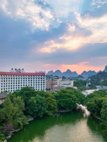 酒店以中式古典為設計主題,佔地48,000平方米,在寬敞的客房裏就能欣賞到景色旖旎的灕江、賞綠意盎然的園林。