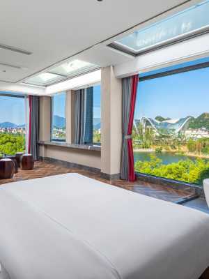 尤其是針對每一間房特意做了落地大玻璃窗,整個酒店讓您擁抱大自然、擁抱桂林的母親河—灕江風景盡收眼底。