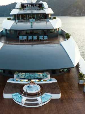 該船在您入住期間至少有部分時間從下龍啟航巡遊。 您可利用酒店的按摩慰勞一下自己,或者到屋頂露台欣賞美景。 16 間空調客房定能讓您在旅途中找到家的舒適。配備淋浴設施的私人浴室提供大花灑淋浴噴頭和免費洗浴用品。便利設施包括免費瓶裝水,而且按要求提供提供客房服務
