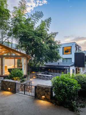 民宿配以寬敞的庭院,庭院景觀圍繞原有的古樹銀杏展開設計,根據四季時段種植花卉植被,給人以四季花開,時時有景的感官體驗。三五好友圍坐在亭子裏,在冬日裏看着飄雪烤着暖火,在夏日裏聽着蟬鳴吃着燒烤,享受每個季節不一樣的風景。