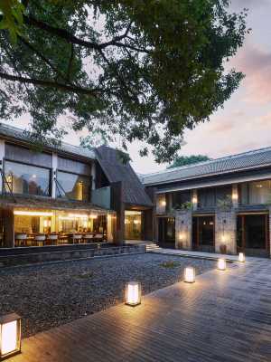 西湖蜜隱禪和源酒店位於杭州西湖區白樂橋村,背靠北高峯,遙眺西湖水,可謂在山水之間,在峯塔之間。考慮到靠近靈隱寺這個獨特的地理位置,建築風格以中式禪意為主,著名設計師金軍先生採用了借景入室的創作手法,潺潺小溪門庭前流過,被竹林包圍的庭院曲幽通徑,動靜平衡得恰到好處。