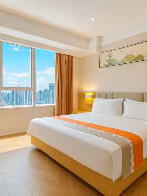 酒店旨在是為顧客朋友提供“超健康、超舒適、超價值、超期望”的高品位、高性價比的產品和服務。讓每一位顧客朋友享有一個“安靜、健康、友好、舒適”的休憩空間。酒店擁有高級大床房、影院房、高級雙床房、套房。麻將房等不同房型供客人選擇,提供24小時熱水、空調、免費停車場、免費洗衣、自助早餐、有線電視、上網投屏等配套設施,能滿足賓客的不同需求,是您理想的下榻之處。