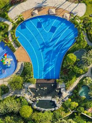 半山温泉為氡温泉,通過專用管道將泉水輸送到酒店,泡過酒店的温泉皮膚都是滑滑嫩嫩的;酒店還配備了無邊際泳池、萌娃水上樂園等,是夏日消暑,親子玩樂的好選擇!