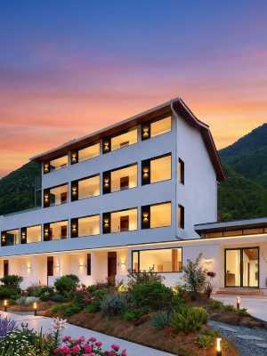 清晨山巔雲回之景靜卧欣賞(雲回),晌午的日光浴盡情享受(Sunsite),造景不如借景,讓您靜卧房中就能飽覽九寨幽境(望山居),傍晚歸來一個熱水的湯池解乏。