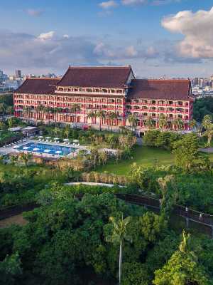 鄰近高雄澄清湖, 居高望下可以俯覽高雄市夜景。距離小港機場約30分鐘車程,適合觀光遊憩及各項會議。飯店的建築,集西方建築的雄偉與東方建築的古雅於一體,兼具力與美的表現無論興建的大廈;而內部的裝潢陳設,以及傢俱擺飾,無不皆具中國傳統的藝術色彩,極見匠心獨運。尤其遍懸各廳的畫飾與浮雕,均屬自名家手筆。其他如各色各樣盤根輟節的盆景奇石、連綿的大理石階梯欄杆,與房間內部的明式、紅木傢俱,令人發思古之幽情。